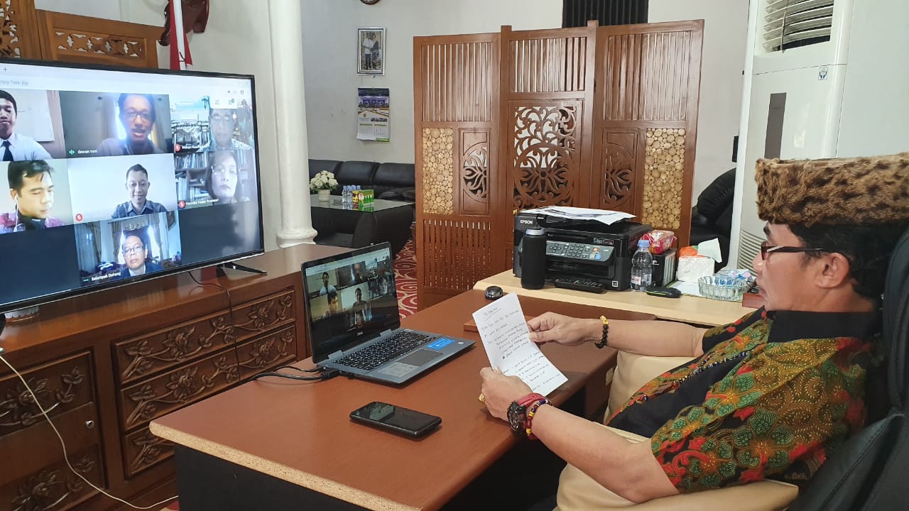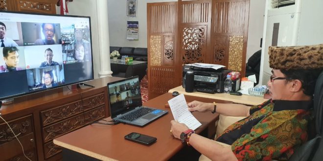 Beritakalteng.com, PALANGKA RAYA- Rektor Universitas Palangka Raya (UPR) Dr Andrie Elia SE MSi bersama Wakil Rektor UPR Bidang Akademik Prof Dr Ir Salampak MS menyaksikan Ujian Akhir mahasiswa program studi (prodi) Teknik Sipil Fakultas Teknik (FT), Wahyu Setya Sasongko, melalui sambungan virtual Hangout Meet, dari Rumah Jabatan (Rujab) Rektor UPR, Rabu (29/4/2020) pagi.
