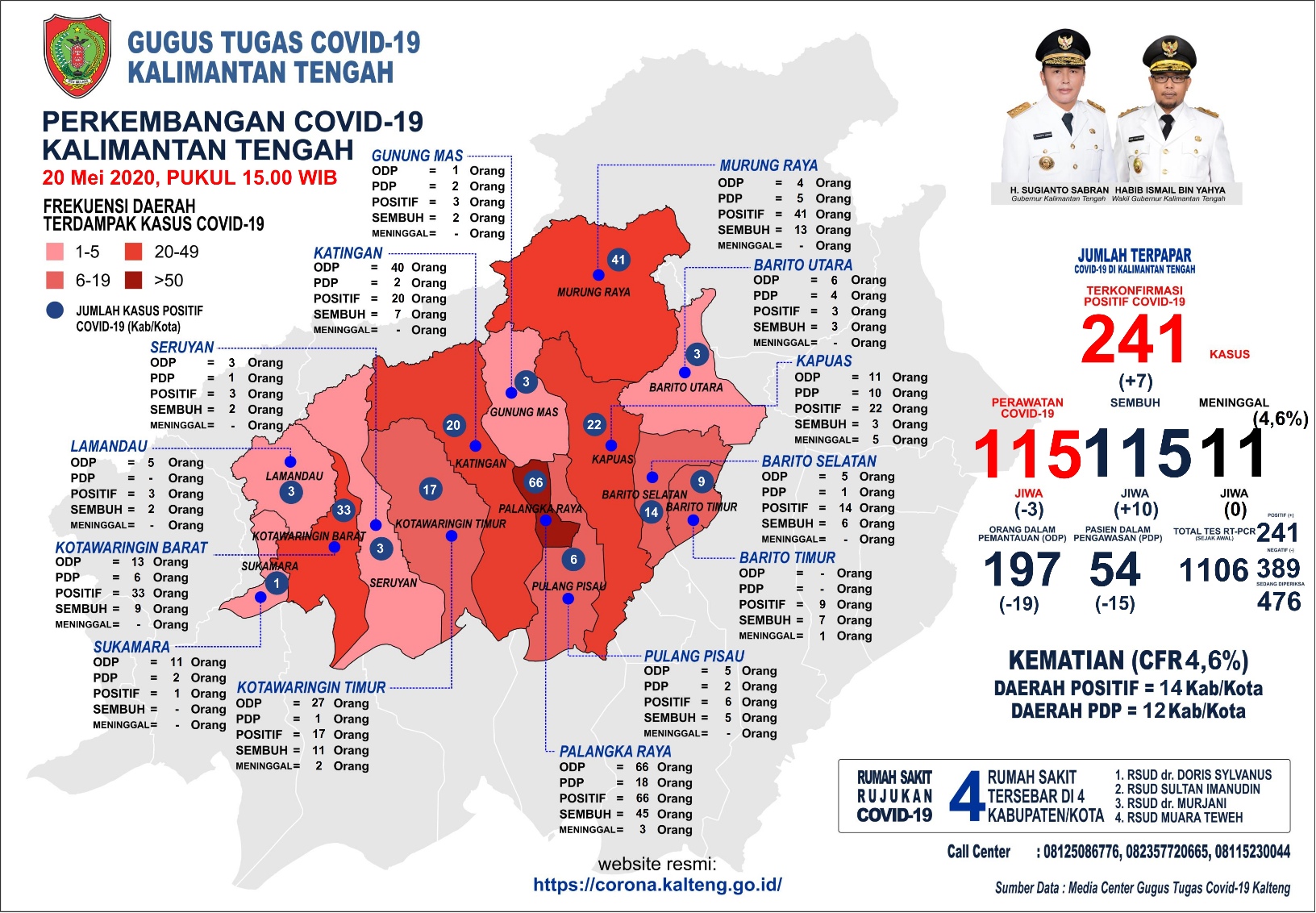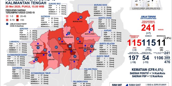 Foto : Peta penyebaran Covid-19, berdasarkan rilis laman resmi GTPPC-19 Kalimantan Tengah, Rabu (20/5/2020).