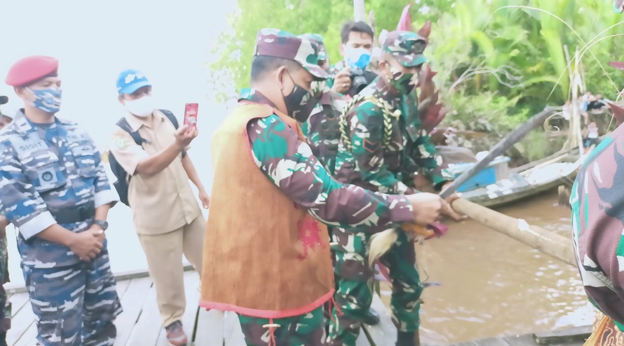 Beritakalteng.com, SAMPIT – Kunjungan Asisten Latihan (Aslat) Kepala Staf Angkatan Darat (Kasad) Mayjen TNI Harianto beserta rombongan, dalam rangka untuk meninjau langsung pelaksanaan TNI Manunggal Membangun Desa Reguler Ke-109 di Kecamatan Pulau Hanaut, Kabupaten Kotawaringin Timur, Rabu (30/09/2020) disambut dengan upacara potong pantan, tampung tawar, lawang sakepeng, dan tari Dayak pesisir.” Rabu, (30/9/2020).