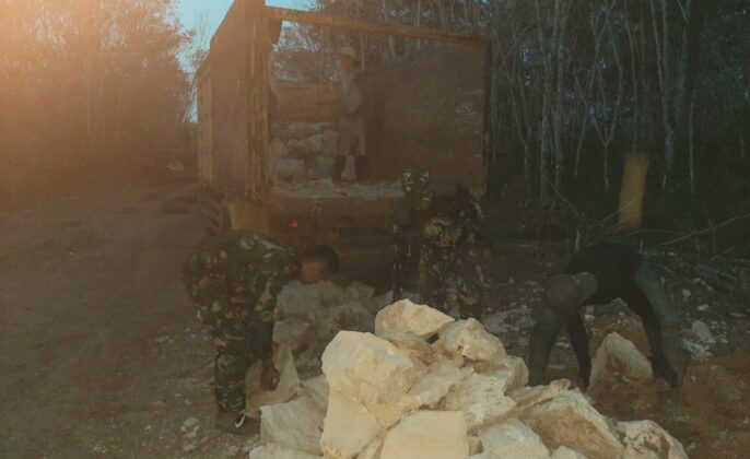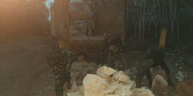 Beritakalteng.com, TAMIANG LAYANG – Disela kesibukan mereka, anggota satgas TMMD Ke-109 Kodim 1012 Buntok, seringkali membantu para warga di desa sasaran mengangkat batu kedalam truk.