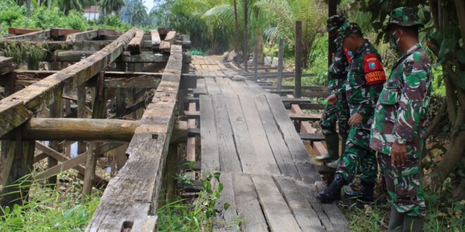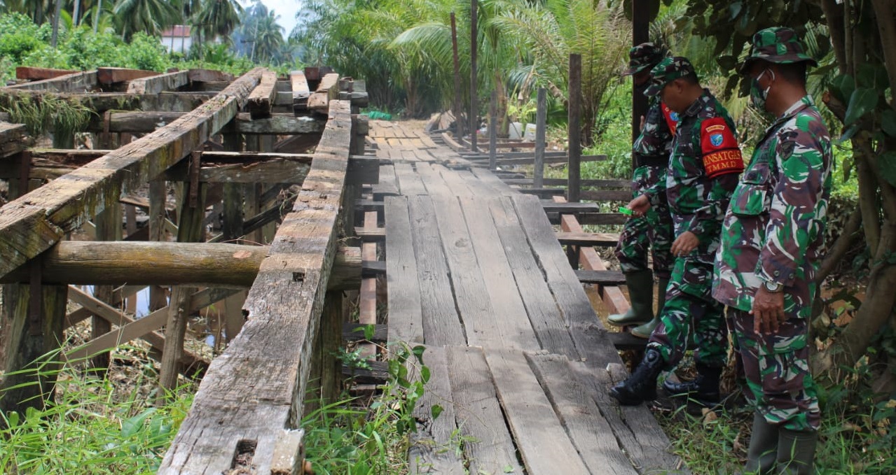FOTO : Letkol CZI Akhmad Safari ketika meninjau pembangunan jembatan.