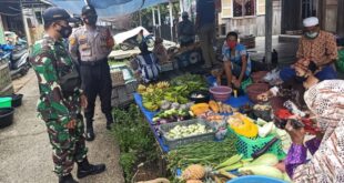 Bersama Babhinkamtibmas, Satgas TMMD Sosialisasikan 3M di Pasar Sibung