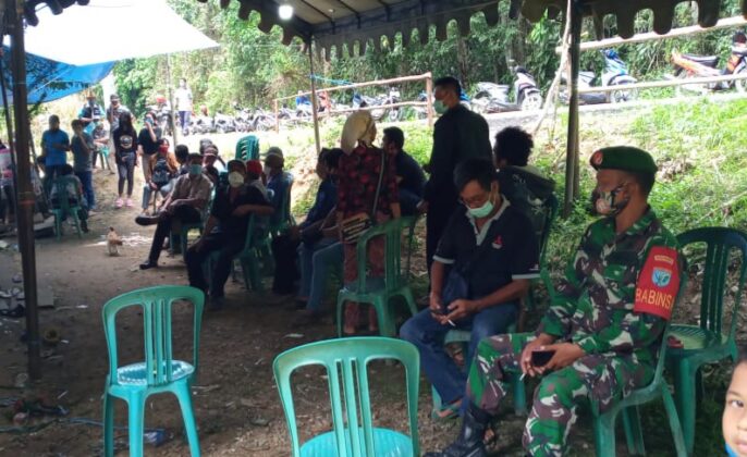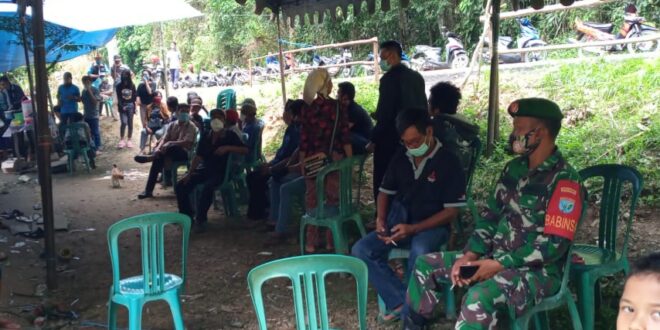 Beritakalteng.com, TAMIANG LAYANG – Hadir dalam hajatan perkawinan salah satu warga di Dusun Layung Habang, Desa Sibung, Kecamatan Raren Batuah, Kabupaten Barito Timur, satgas TMMD Ke-109 Kodim 1012 Buntok berikan penyuluhan kedisiplinan terhadap protokol kesehatan (Prokes) penanganan Covid-19.