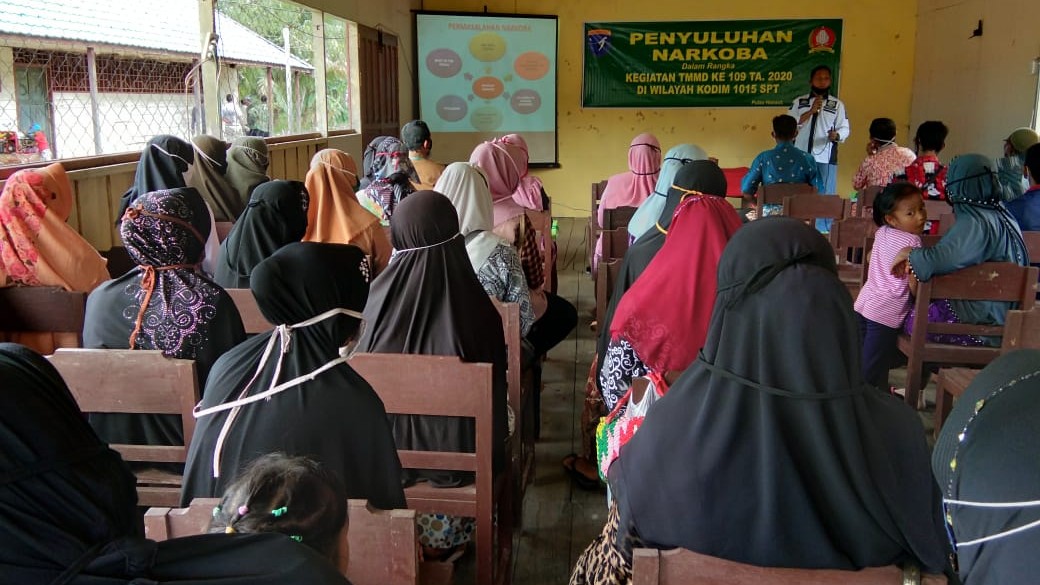 Beritakalteng.com, SAMPIT – Tim Satgas TNI Manunggal Membangun Desa (TMMD) Kodim 1015 Sampit, di Kecamatan Pulau Hanaut, Kabupaten Kotawaringin Timur (Kotim), memberikan penyuluhan narkoba kepada masyarakat di daerah tersebut.