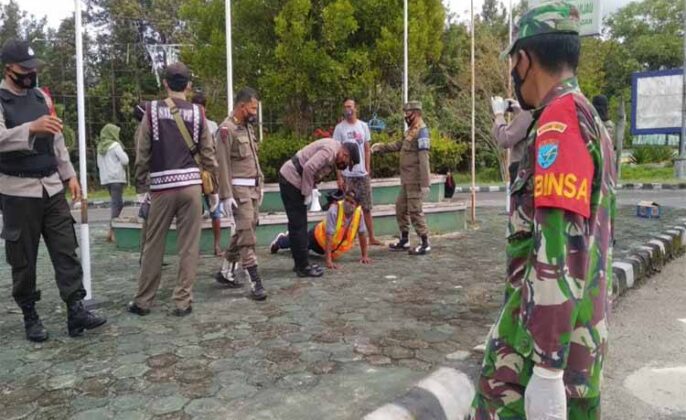 Namun sanksi yang diberikan kepada para pelanggar hari ini, yaitu sanksi sosial. Pelanggar kemudian diberikan sanksi fisik berupa push up, menyanyikan lagu kebangsaan dan melafalkan Pancasila.