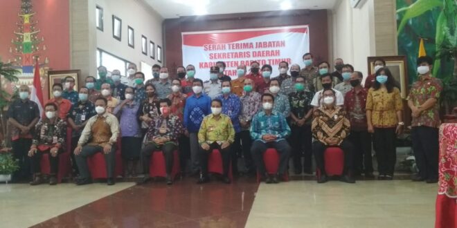 Serah terima jabatan dilakukan di Aula Rumah Jabatan Bupati Barito Timur, dengan mematuhi protokol kesehatan dan disaksikan beberapa pejabat utama.