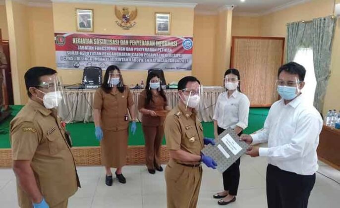 Kasongan – Sebanyak113 orang kini telah mengantongi SK CPNS. Hal ini mengemuka diacara sosialisasi dan penyebaran informasi jabatan fungsional ASN calon pegawai negeri sipil atau CPNS Kabupaten Katingan formasi umum tahun anggaran 2019 di aula BKPP, Senin, (18/1/2021).