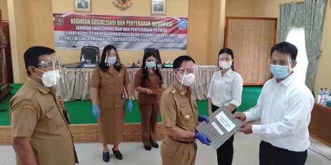 Kasongan – Sebanyak113 orang kini telah mengantongi SK CPNS. Hal ini mengemuka diacara sosialisasi dan penyebaran informasi jabatan fungsional ASN calon pegawai negeri sipil atau CPNS Kabupaten Katingan formasi umum tahun anggaran 2019 di aula BKPP, Senin, (18/1/2021).