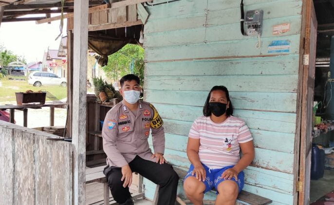 beritakalteng.com – Kuala Kurun – Bhabinkamtibmas Polsek Kurun, Polres Gunung Mas (Gumas), Polda Kalteng, Bripka Wiratama Dicky memberikan Sosialisasi kepada Warga Binananya Agar mematuhi Protokol Kesehatan di masa pandemi dan penanganan Virus Covid-19, Minggu (24/1/2021) pagi.