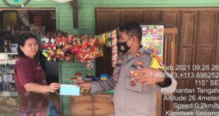 beritakalteng.com – KUALA KURUN – Kapolsek Sepang, Polres Gunung Mas (Gumas), Polda Kalteng Iptu Sugiharso, S.H., turun langsung/blusukan menuju permukiman penduduk untuk membagikan masker. Meski di hari libur tak menyurutkan niatnya untuk terus menjadi contoh dan menggalakan disiplin protokol kesehatan kepada masyarakat. Minggu (07/02/20121) Pukul 09.00 WIB “Pembagian masker …