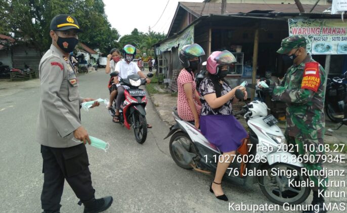 “Hari ini anggota Polsek Kurun di bantu oleh rekan kita dari TNI membagikan ratusan masker kepada para pengendara jalanan umum yang melintas,” katanya.