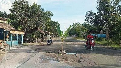 “Dengan melihat kondisi jalan rusak bahkan sudah ditanami pisang oleh warga, kita berharap pemerintah provinsi cepat tanggap, menangani kondisi jalan yang rusak itu,” kata Kurniawan, kemarin (9/2/2021).
