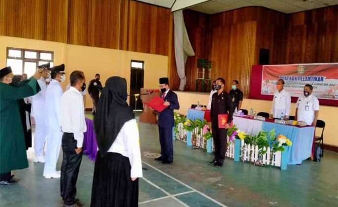 “Perlu juga saya sampaikan bahwa saat ini kita berada ditengah keadaan darurat bencana nasional yaitu pandemi Covid-19 dan saya minta kepada penjabat kepala desa yang baru dilantik dan anggota BPD yang baru diambil sumpah janjinya agar selaku memaksimalkan pencegahan penyebaran Covid-19 seperti memakai masker, sering mencuci tangan, dan menjaga jarak,” imbuhnya.