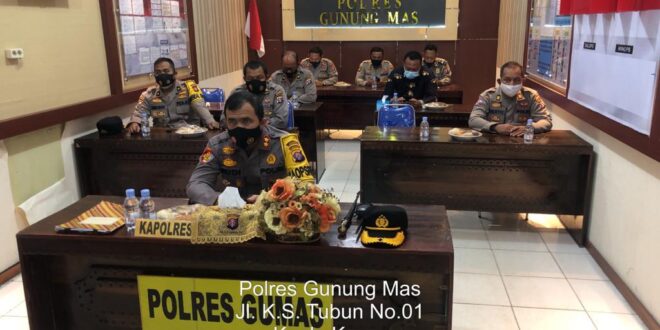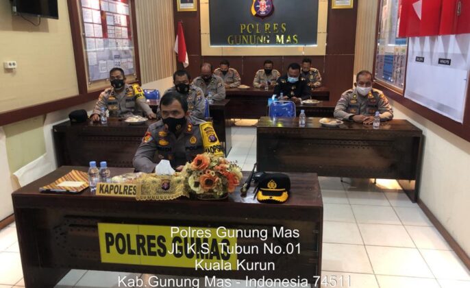 Seperti Polres Gunung Mas (Gumas), Polda Kalteng yang dipimpin Kapolres AKBP Rudi Asriman, S.I.K., berserta seluruh Pejabat Utama (PJU) Polres Gumas yang mengkuti kegiatan tersebut di Aula Rupatama Polres Gumas.