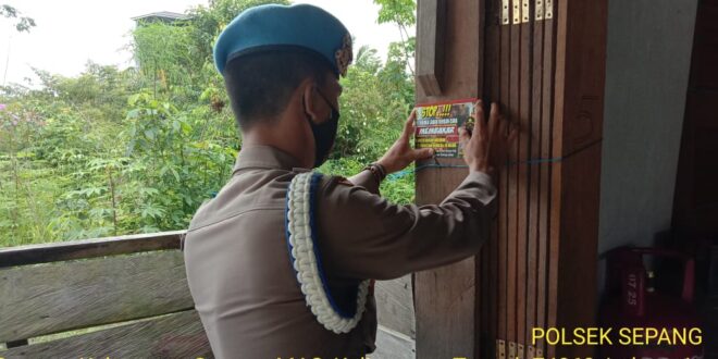 Dalam kesempatan ini personel Polsek Sepang memasang Pamfle/stiker yang berisikan tentang pencegahan Karhutla yang berisikan larangan dan sanksi pidana bagi pelaku pembakar hutan dan lahan kepada masyarakat agar diimplementasikan dan diketahui.