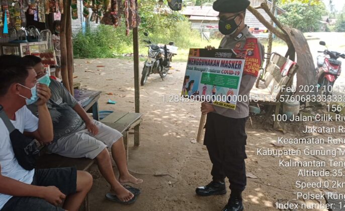 beritakalteng.com – KUALA KURUN – Patroli Dialogis merupakan salah satu cara Polsek Rungan, Polres Gunung Mas jajaran Polda Kalteng dalam memberikan sosialisasi penerapan protokol kesehatan kepada masyarakat wilayah hukumnya. Kamis (18/02/2021) pukul 10.25 WIB