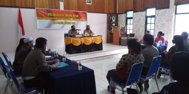 beritakalteng.com – KUALA KURUN – Sebanyak lima pasang calon pengantin yang akan melaksanakan perkawinan dengan anggota Polri, menjalani sidang BP4R (Badan Pembantu Penasehat Perkawinan Perceraian dan Rujuk) di aula Bhayangkari Polres Gunung Mas, Kamis (18/2/2021) pagi.