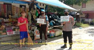 beritakalteng.com – KUALA KURUN – Personel Polsek Sepang, Polres Gunung Mas, terus menggiatkan sosialisasi pencegahan Covid-19 dengan menerapkan Protokol Kesehatan (Prokes) bagi masyarakat di wilayah hukumnya, (22/2/2021) siang. Kegiatan tersebut dilaksanakan sembari membawa papan portabel berisi imbauan untuk memakai masker dan tetap menjaga jarak. Kapolsek Sepang Iptu Sugiharso, S.H., menjelaskan, …