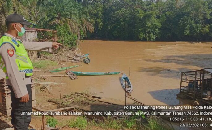 beritakalteng.com – KUALA KURUN – Mewaspadai datangnya banjir kiriman, personel Polsek Manuhing, jajaran Polres Gunung Mas (Gumas), Polda Kalteng, melaksanakan patroli sekaligus mengecek debit air di sungai Manuhing, Kabupaten Gunung Mas, Provinsi Kalteng, Selasa (23/02/2021) siang.