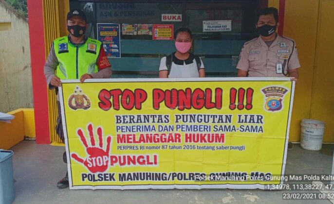 Kapolsek Manuhing Ipda Juwito mengungkapkan kegiatana yang dilaksanakan ini merupakan bentuk ajakan kepada masyarakat di wilayah hukum Polsek Manuhing untuk bersama-sama memberantas kegiatan praktek pungli.