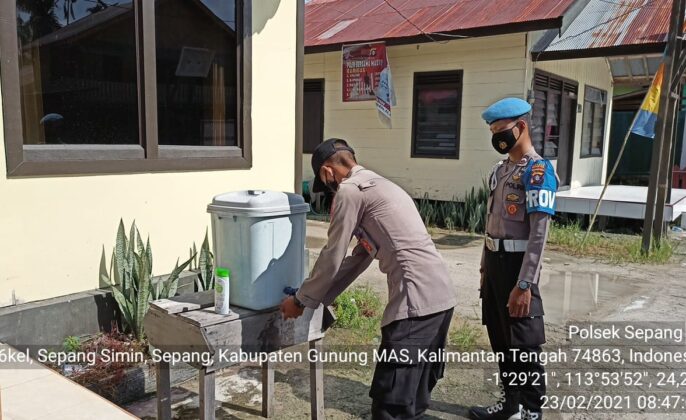 beritakalteng.com – KUALA KURUN – Untuk memutus rantai penyebaran Covid-19 serta menjaga kedisplinan Anggota, Polsek Sepang, Polres Gunung Mas melaksanakan pendisiplinan protokol kesehatan internal personel Polsek, Selasa (23/2/2021) siang.