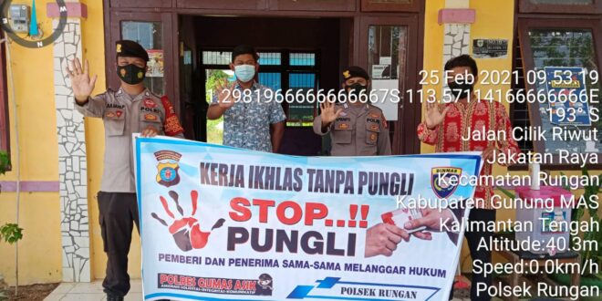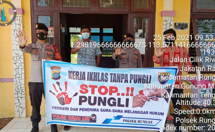 Kapolsek Rungan Iptu Marolop Purba melalui Bripka Aprianto saat melaksanakan sosialisasi mengatakan bahwa kegiatan ini dilakukan untuk memberikan pemahaman kepada masyarakat khusunya warga masyarakat agar menghindari terjadinya praktek pungutan liar yang tidak sesuai dengan ketentuan dan aturan terutama penyaluran dana desa dan Pelayanan Publik.