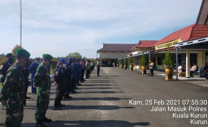 beritakalteng.com – KUALA KURUN – Polres Gunung Mas (Gumas), Polda Kalteng menggelar apel Sosialisasi Maklumat Kapolda Kalteng tentang Sanksi Pidana pembakaran hutan dan lahan di halaman Mapolres Gumas yang dipimpin Kapolres Gumas AKBP Rudi Asriman, S.I.K., Kamis (25/02/2021) Pagi.