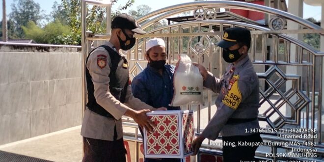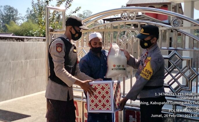 Usai Jalani Salat Jumat, Polsek Manuhing Bagikan Sembako Gratis