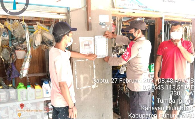 beritakalteng.com – KUALA KURUN – Bhabinkamtibmas Polsek Kahut, Polres Gunung Mas (Gumas) jajaran Polda Kalteng melaksanakan Sosialisasi tentang larangan membakar hutan dan lahan. Kegiatan dilakukan di desa Binaan Bripka Eka Junada, Sabtu (27/2/2021) pukul 13.30 WIB.