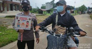 beritakalteng.com- KUALA KURUN – Polsek Kahut jajaran Polres Gunung Mas, Polda Kalteng, terus menggiatkan sosialisasi pencegahan Covid-19 dengan menerapkan Protokol Kesehatan (Prokes) bagi masyarakatnya, Kamis (18/02/2021) siang. Kegiatan tersebut dilakukan sembari berpatroli bersama personelnya sembari membawa papan portabel berisi imbauan untuk memakai masker dan tetap menjaga jarak. Kapolsek Kahut Iptu …
