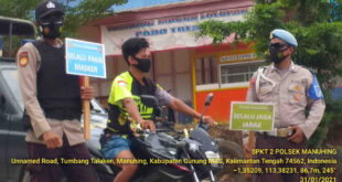 beritakalteng.com – KUALA KURUN – Polsek Manuhing, Polres Gunung Mas (Gumas), Polda Kalteng terus berupaya melakukan pencegahan penyebaran Covid-19. Salah satunya dengan memberikan imbauan dan edukasi protokol kesehatan yang rutin dilaksanakan oleh jajarannya, Minggu (31/1/2021) siang. “Tidak henti-hentinya kami menyampaikan sosialisasi dan edukasi kepada masyarakat betapa pentingnya untuk tetap …
