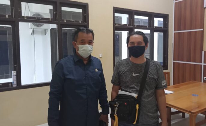 Diperiksa : Amar Iswani (kiri) korban sekaligus saksi pelapor kasus dugaan penyerangan yang dilakukan oleh AN saat didampingi oleh kuasa hukumnya dari PPKHI Arimadia, SH, sesaat setelah menjalani pemeriksaan tambahan di Makopolres Barsel, Jumat (12/3/2021).