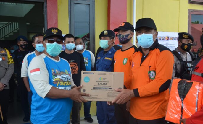 Wakil Gubernur Kalteng Habib Ismail Bin Yahya saat menyerahkan bantuan untuk posko Karhutla Polres Kotawaringin Timur yang berada di Jalan Pelita Lingkar Luar Sampit