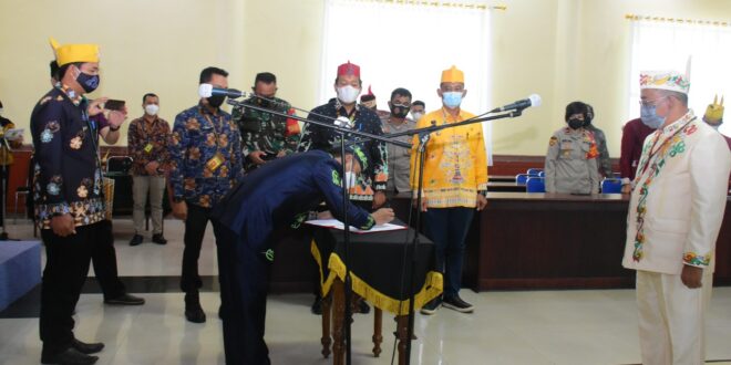 Demikian salah satu poin penting yang disampaikan Wali Kota Palangka Raya, Fairid Naparin saat melantik Wawan Embang sebagai Damang Kepala Adat Dayak Kecamatan Sebangau masa Bhakti 2021-2027 di Aula Peteng Karuhei II, Kamis (22/4/2021).