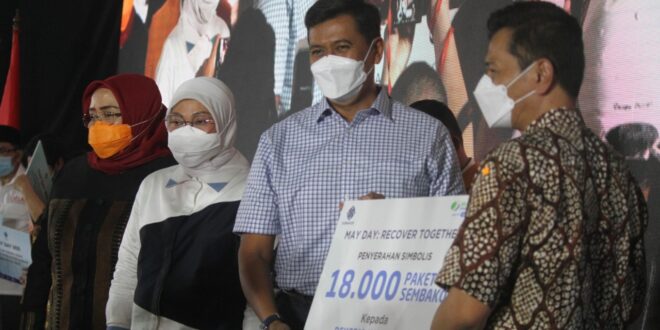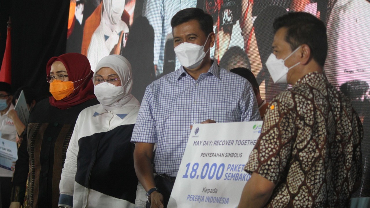Seperti kegiatan penyerahan bantuan sebanyak 18.798 paket sembako secara simbolis oleh Direktur Utama BPJamsostek, Anggoro Eko Cahyo bersama Menteri Ketenagakerjaan, Ida Fauziah beserta instansi pemerintahan lainnya seperti Menteri Koordinator Maritim dan Investasi, Asosiasi Pengusaha Indonesia (APINDO), dan Pemerintah Daerah, sabtu (01/5/2021) di Balai Besar Pengembangan Latihan Kerja (BBPLK) di Bekasi.