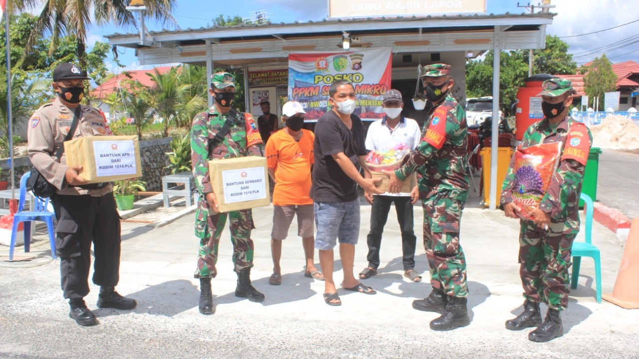 Penyerahan bantuan berupa sembako dan APD tersebut dipimpin Danramil 1016-01/Pahandut Mayor Inf Heru Widodo mewakili Dandim 1016/Plk Kolonel Inf I Gede Putra Yasa.