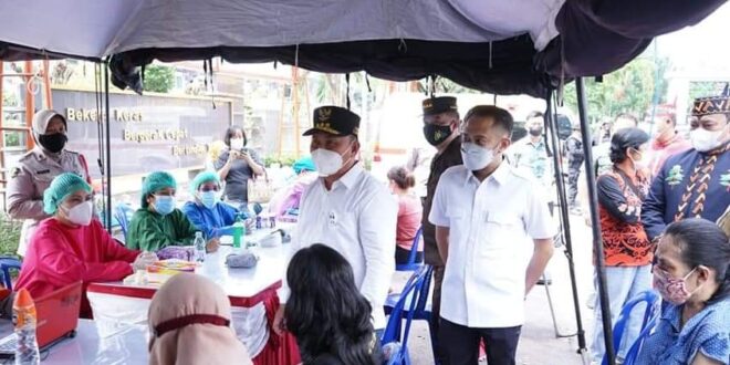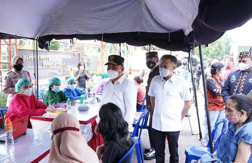 Beritakalteng.com, PALANGKA RAYA – Gubernur Kalimantan Tengah, H Sugianto Sabran, didampingi wakilnya H. Edy Pratowo pada Selasa (1/6/2021), melakukan peninjauan pelaksanaan vaksinasi covid-19 secara massal, di Pasar Besar Palangka Raya.