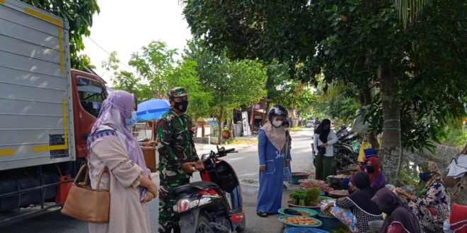 Babinsa bersama petugas PPKM, secara terus menerus akan menghimbau masyarakat termasuk pedagang dan pengunjung pasar agar senantiasa disiplin menjalankan protokol kesehatan ketika berada ditempat keramaian atau saat beraktifitas diluar rumah.