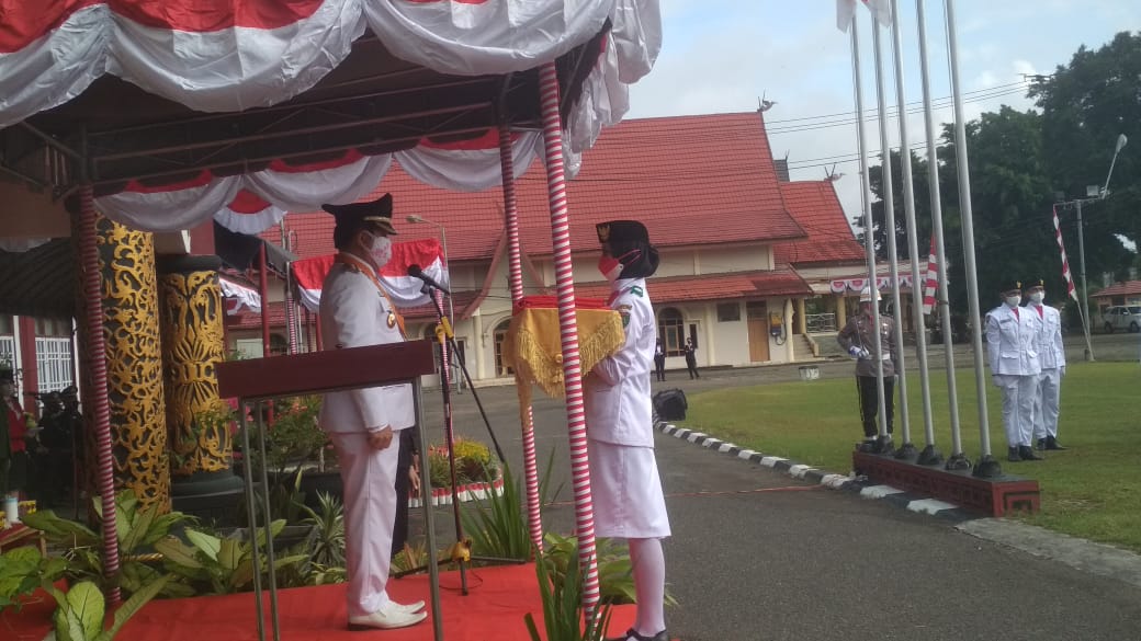 FOTO : Bupati Bartim, Ampera AY Mebas ketika memimpin upacara HUT 17 Agustus 2021.