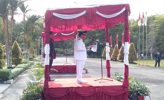 Kasongan – HUT Kemerdekaan Republik Indonesia di Kabupaten Katingan diperingati secara sederhana, Selasa, (17/8/2021). Jumlah peserta upacara yang hadir secara fisik terbatas, karena masih pandemi Covid-19.