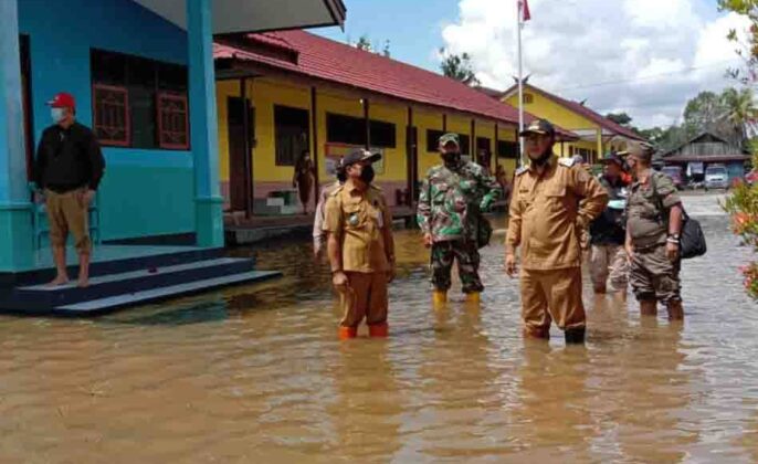 Kasongan – Wakil Bupati Katingan, Sunardi Litang terjun langsung meninjau banjir yang terjadi di wilayah Kecamatan Tewang Sanggalang Garing atau TSG dan Kecamatan Pulau Malan, Selasa, (24/8/2021).