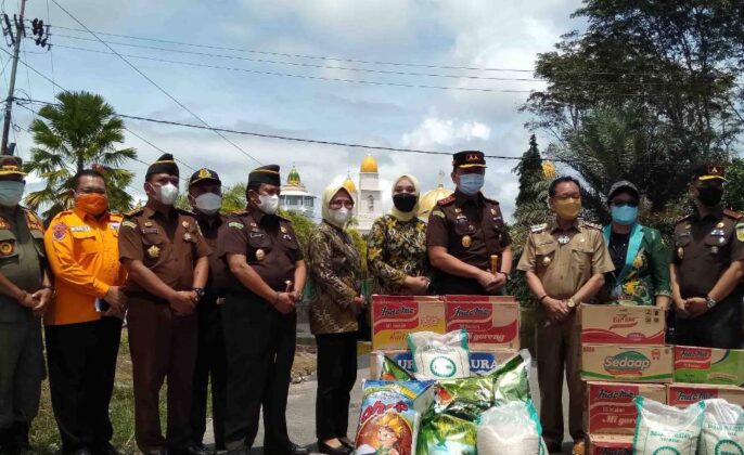 Kasongan – Pihak Kejaksaan Tinggi atau Kejati Provinsi Kalimantan Tengah turut menyalurkan bantuan sembilan bahan pokok atau sembako kepada warga korban banjir di wilayah Kabupaten Katingan, Senin, (30/8/2021).