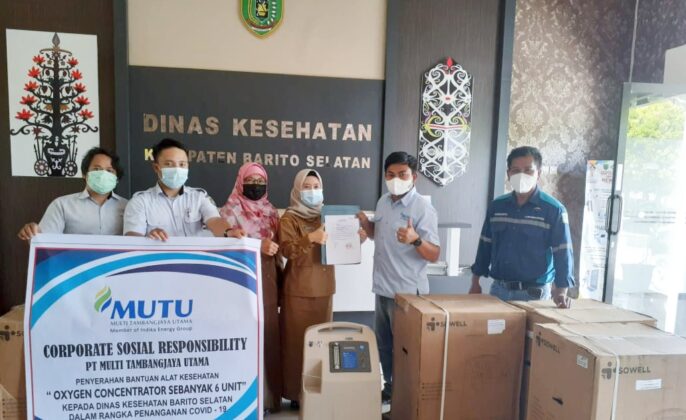 Diterangkan oleh Dept Head External Relation (DHER) PT. MUTU, Sumarling, sebagai bagian dari komitmen perusahaan dalam turut berperan aktif melawan COVID-19 di wilayah Barsel, PT.MUTU melalui Program CSR “TANGGAP COVID-19” menyerahkan bantuan alat kesehatan yaitu Oksigen Konsentrator sebanyak 6 unit kepada Dinkes Bumi Dahani Dahanai Tuntung Tulus tersebut.