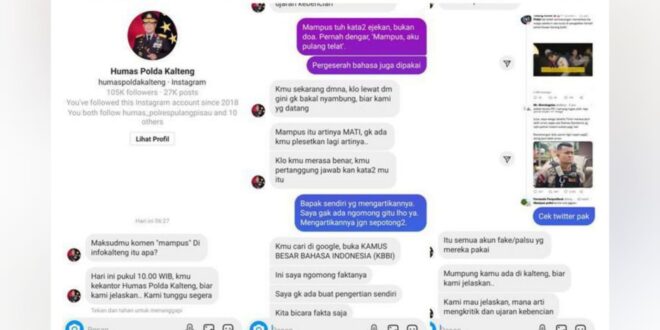 BERITAKALTENG.com – PALANGKA RAYA – Pemanggilan tak sesuai standar operasional (SOP) hingga berujung adu argumen kata ‘Mampus’, membuat akun resmi Instagram Humas Polda Kalteng viral di media sosial.