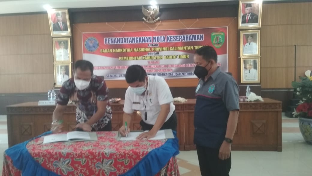 Beritakalteng.com, Tamiang Layang – Pemerintah Kabupaten Barito Timur dan Badan Narkotika Nasional Provinsi (BNNP) Provinsi Kalimantan Tengah mendatangani Memorandum of Understanding (MoU) di ruang rapat Lantai 2 Kantor Bupati Barito Timur, Rabu (27/10/2021).