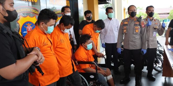 FOTO : Empat pelaku Curat saat dihadirkan dalam Press Release di Mapolresta Palangka Raya, Senin (20/12/2021).