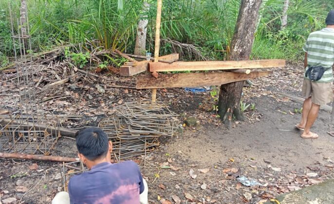 “Sebagian bahan bangunan sudah diletakkan di lokasi pekerjaan, sebagian lagi bahannya dititipkan dan belum diangkut dari toko tempat pembelian,” cerita camat.