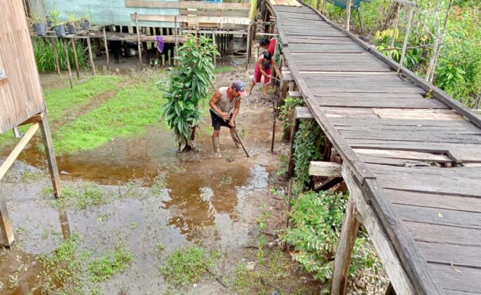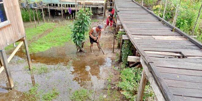 “Pekerjaan pembangunan gang itu tidak bisa dilanjutkan karena kebanjiran, makanya kami hentikan. Selain itu keterlambatan pekerjaan juga terjadi disebabkan DD tahap dua itu baru cair di bulan November 2021 kemaren,” terangnya.