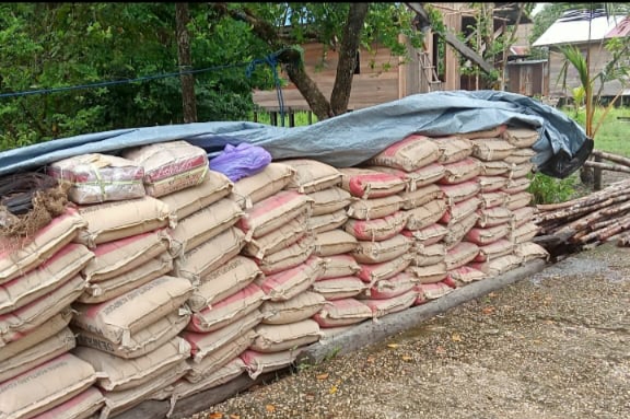“Kalau dibiarkan di lapangan kan takutnya hilang atau semennya membatu, kami selaku pemdes juga yang tanggung jawab. Mau dibiarkan di lapangan, pemdes tidak ada dana untuk membayar upah orang menjaga bahan-bahan itu. Jadi mau tidak mau kami titipkan saja semuanya di toko, lebih aman,” tukasnya.