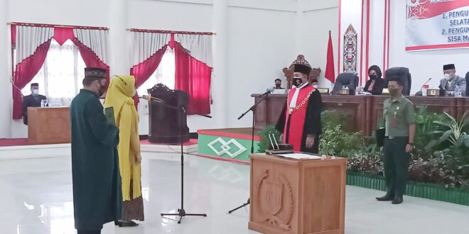 Beritakalteng.com, BUNTOK – DPRD Kabupaten Barito Selatan menggelar rapat Paripurna ke-I masa sidang ke-I pelantikan Nyimas Artika, SE sebagai Pengganti Antar Waktu (PAW) Wakil Ketua I dan Drs. Zainal Abidin sebagai anggota, Jumat (7/1/2022).